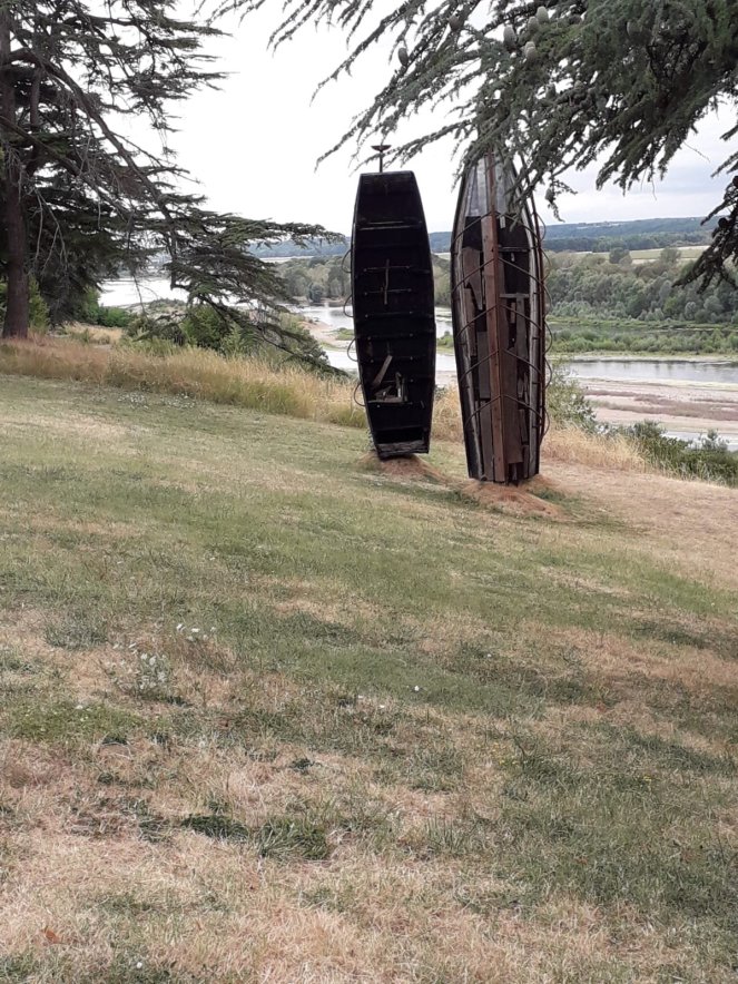 Ici, ces gabares sont dressées pour mieux dominer le fleuve où elles étaient utilisées, façon de rendre hommage aux mariniers d’autrefois.