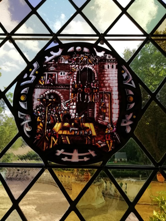 Est représentée ici le châtiment subi par les protestants après qu’ils eurent projeté d’enlever le jeune roi François II lors de « la conjuration d’Amboise » . Décapitations, pendaisons, noyades.. C’est l’un épisodes marquant le début des guerres de religion.