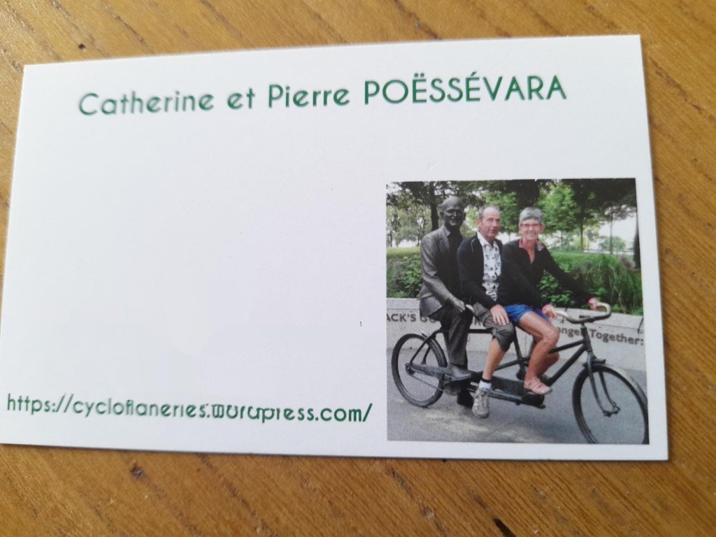 4. J’hésite entre une erreur d’orthographe sur le tableau blanc … si si! et le bronze sur la carte de visite qui aurait été transformée de vélo en triplette ??? Un bronze d’un prof d’université sur un campus … mais lequel?
