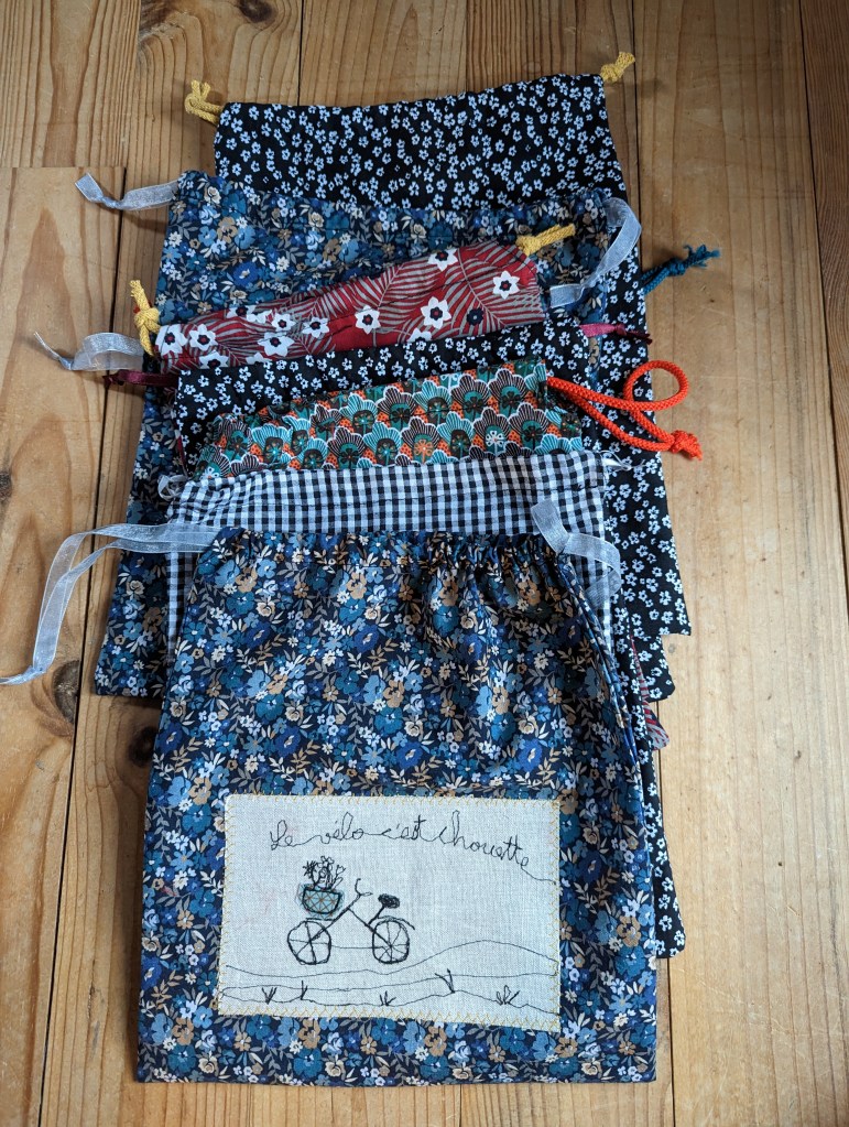 Et pour ceux qui nous accueilleront (les warmshowers), le petit cadeau fait maison. Pour suivre les aventures de Catherine en couture, cela se passe sur Instagram : caticolo, ou sur le blog : 4 bricoles et plus.
