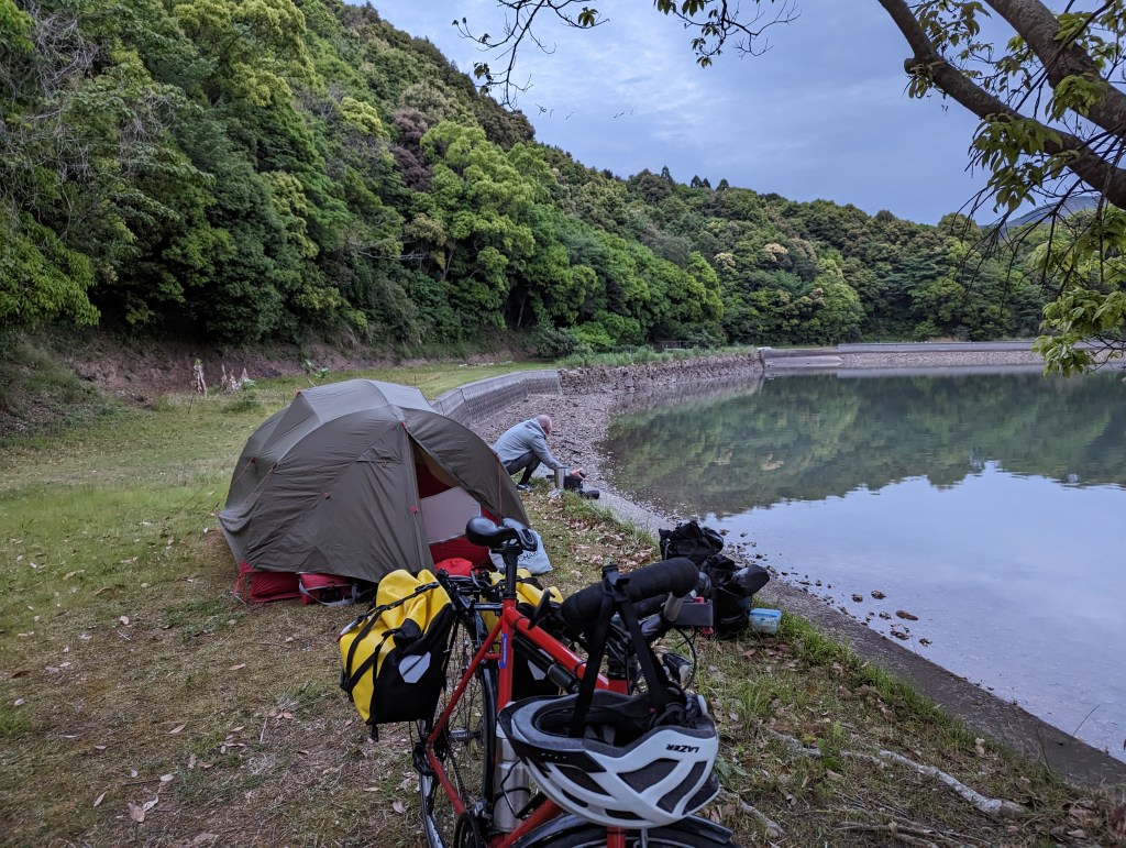 C’est si tranquille et si économique que nous decidons de continuer les bivouacs sur l’île dAmakusa. D’abord près d’un petit port, …