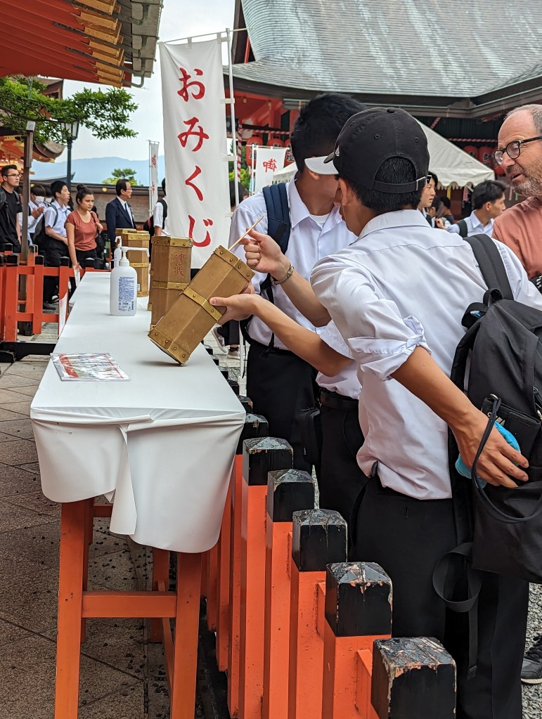 Il est possible de s’attirer les faveurs du dieu grâce à ces boîtes qu’il faut secouer. Une tige en sort. Il faut y lire un numéro qui donnera suite à un avis favorable ou pas!