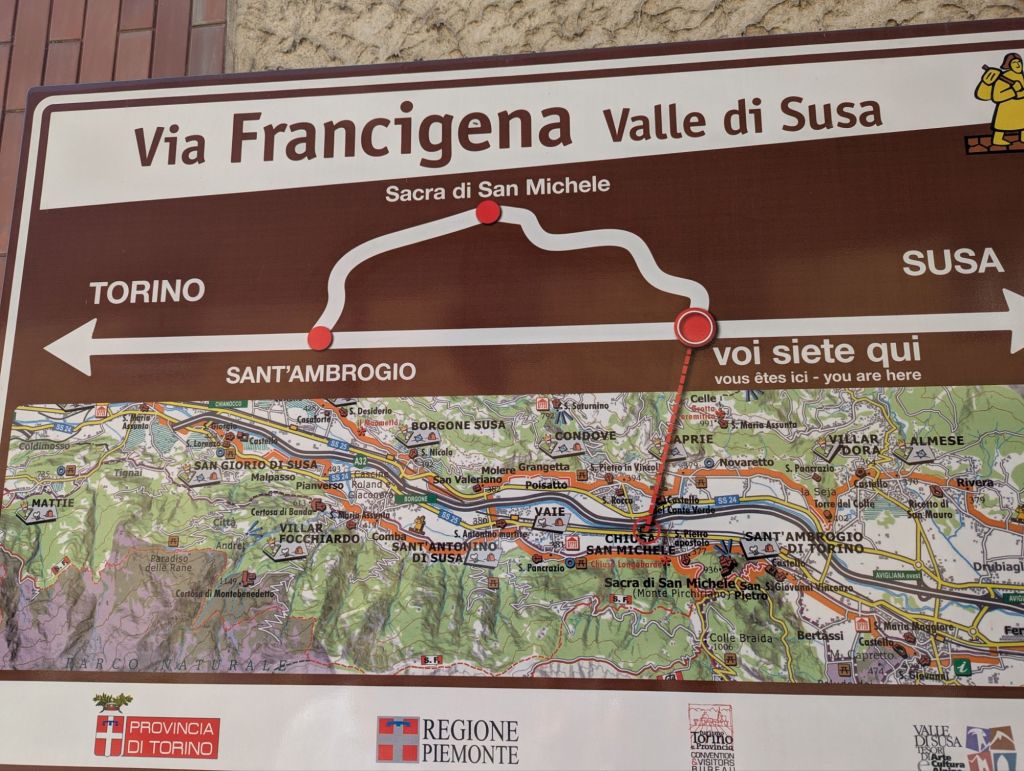 Nous suivons la via Francigena, l’équivalent de St Jacques de Compostelle mais à destination de Rome.